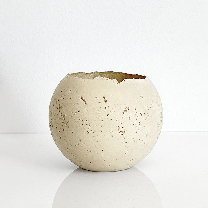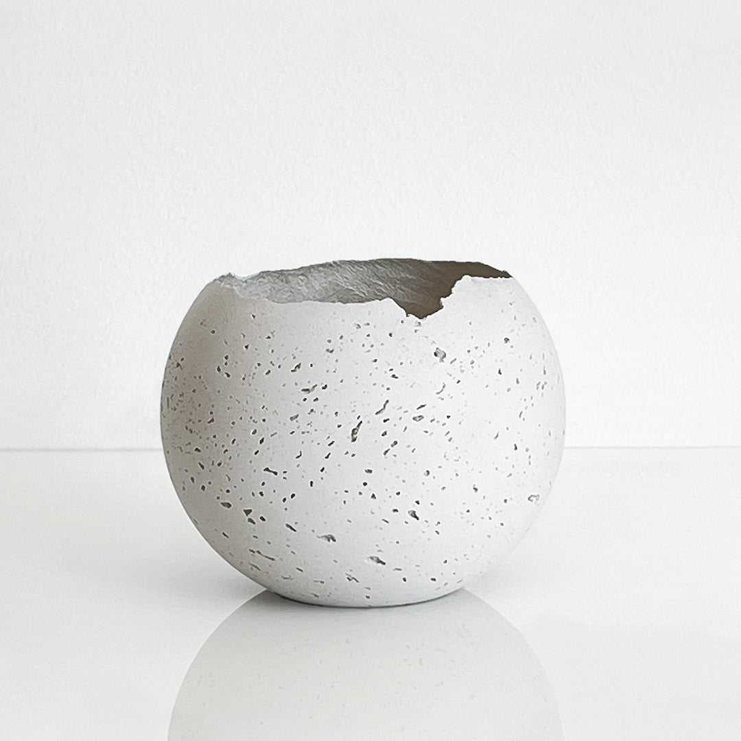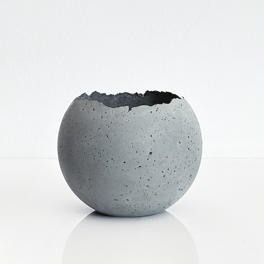 The M - Orbis Concrete Vessel by KONZUK is a unique handcrafted vessel that can bring any room together with its raw, pitted texture and shape. Use this one-of-a-kind piece as a minimal sculpture, an active setting for a scent diffuser, or even as a succulent planter. The possibilities are endless and timeless.