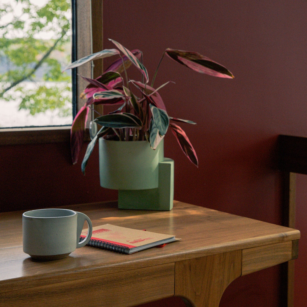 The Platform Planter Collection was designed to connect across color and size to create a multi-level plant landscape. The medium planter fits a 6" grow pot and has a recessed drainage area. New mint and jungle colors are made in pigmented concrete and polished to a smooth finish for a modern look. Display on its own or pair with another planter from the modular collection. The collection was inspired by Bauhaus architecture and its emphasis on geometric forms, use of concrete and timeless palette.