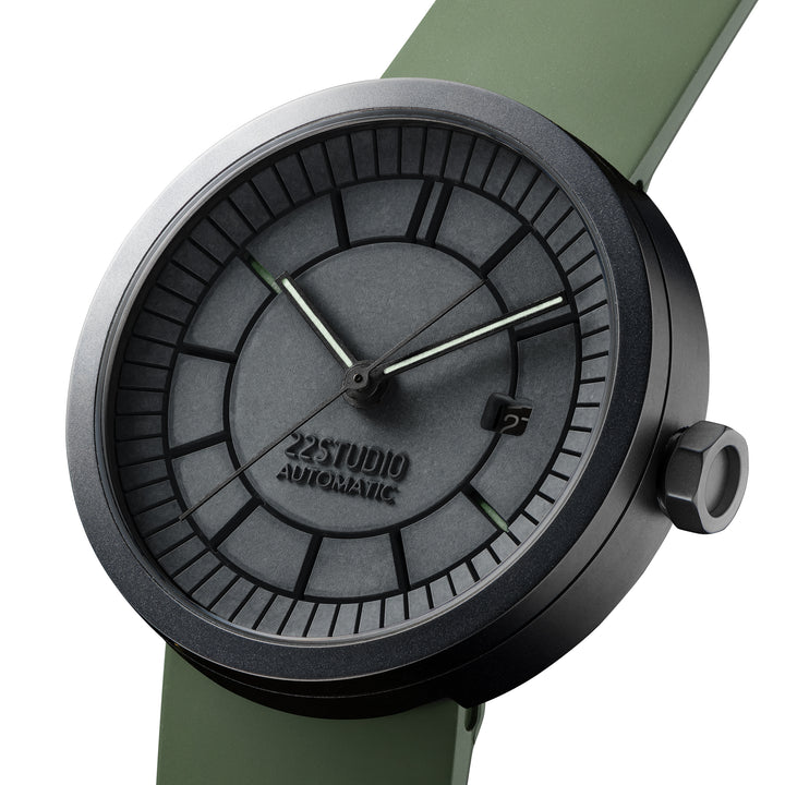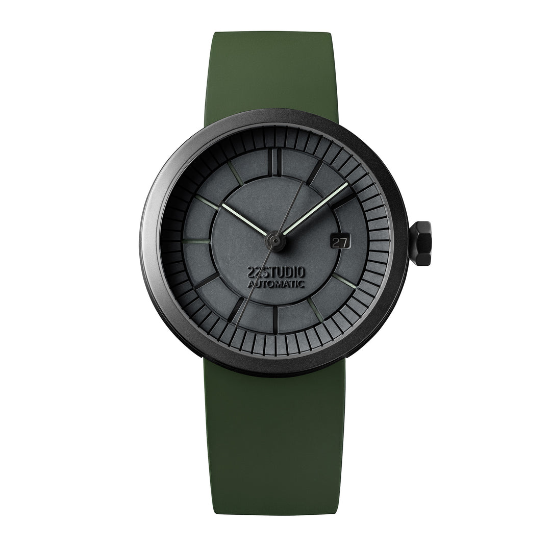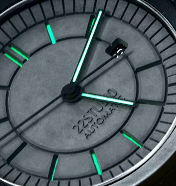 • Innovative Concrete Design: Crafted using 22STUDIO's exclusive "Concrete Curing" process with structured grooves that use shadows as time scales. The Field Edition's blackened cement grey finish creates a distinctive texture that sets it apart from traditional timepieces.