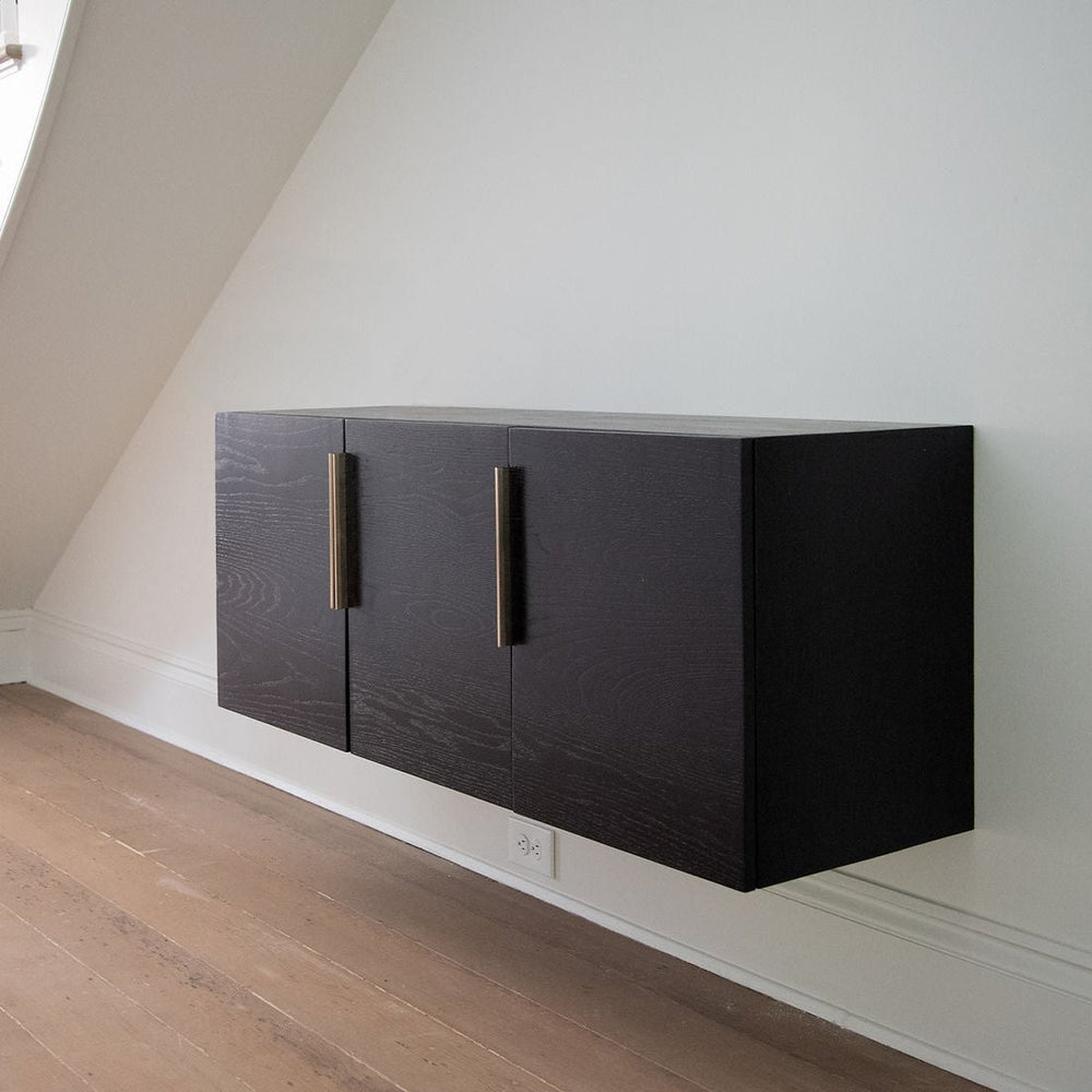 Brass door pulls add warmth to the design, opening to reveal two removable shelves for versatile storage. Perfect for living rooms, dining areas, or offices, the Noir Credenza’s clean, modern lines make it a beautiful and functional centerpiece. A wall-mounted version is also available, offering a contemporary option to suit your space.