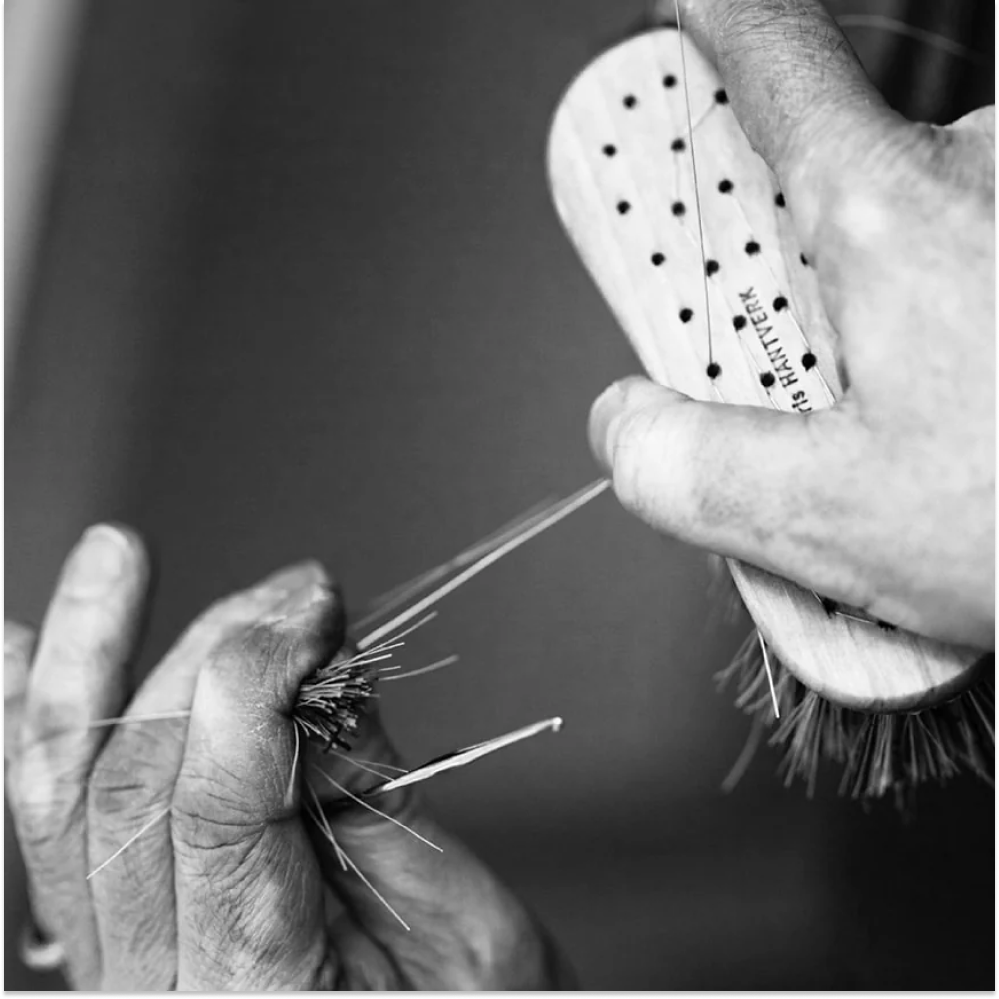 "We bring new dimensions to the concept of sensitively made by hand. Our vision is to revive the traditional brush binding profession through quality, design, and the craftsmen's solid technique."
